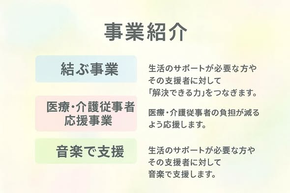 「結ぶ事業」を主軸に、様々な角度から地域の支援をしていきたいと考えております。
